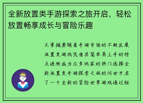《伊苏起源》是一款经典的动作角色扮演游戏,由Falcom公司开发,作为《伊苏》系列的前传,游戏情节与剧情深度吸引了大量玩家。本文将为大家提供《伊苏起源》游戏下载及安装教程详细指南,帮助玩家顺利下载安装并开始畅玩这款经典之作。文章将从四个方面进行详细阐述,分别是:游戏的下载来源与选择、安装前的准备工作...
